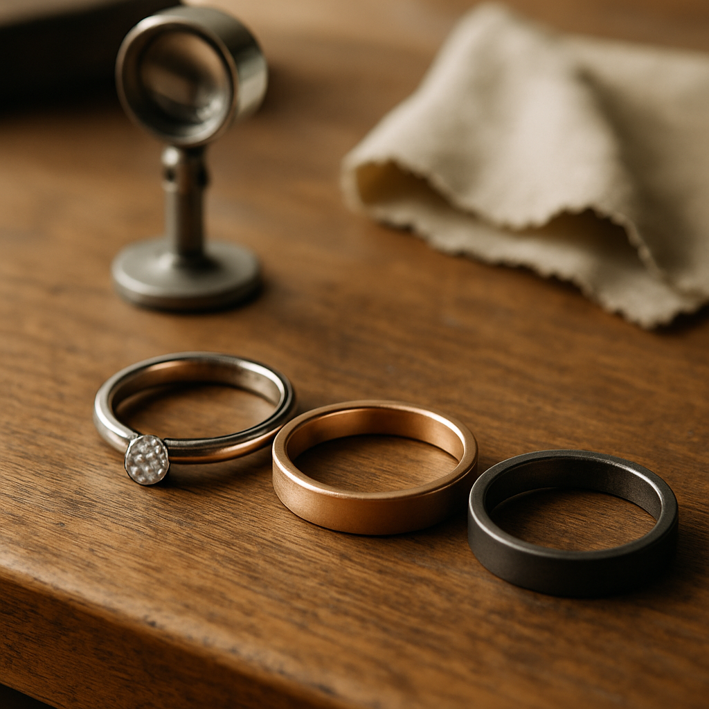 Platin: sehr stabil, hypoallergen, dunklerer Grauton im Lauf der Zeit. Gold: wärmer, leichter, in vielen Farben verfügbar; Weißgold benötigt gelegentlich Rhodinierung. Roségold: trendy und hautschmeichelnd, kann bei manchen Hauttypen besser altern als Weißgold. Deine Entscheidung hängt vom Look ab, den Du bevorzugst, und davon, wie viel Pflege Du investieren möchtest.